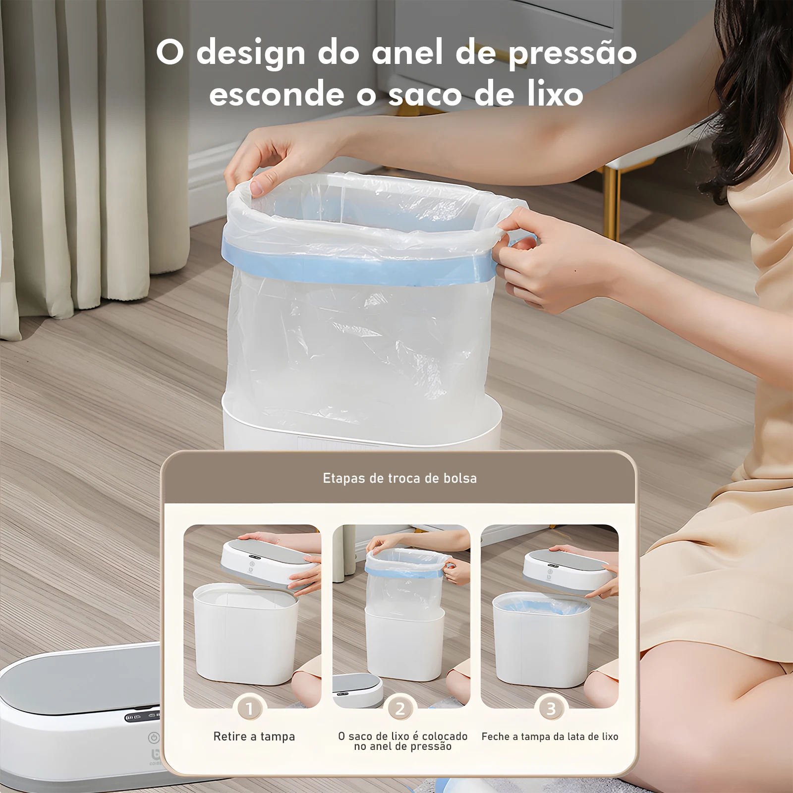 Fácil de Limpar e Manter: Feita com materiais de alta qualidade, a lixeira é fácil de limpar e resistente a odores, garantindo durabilidade e praticidade.